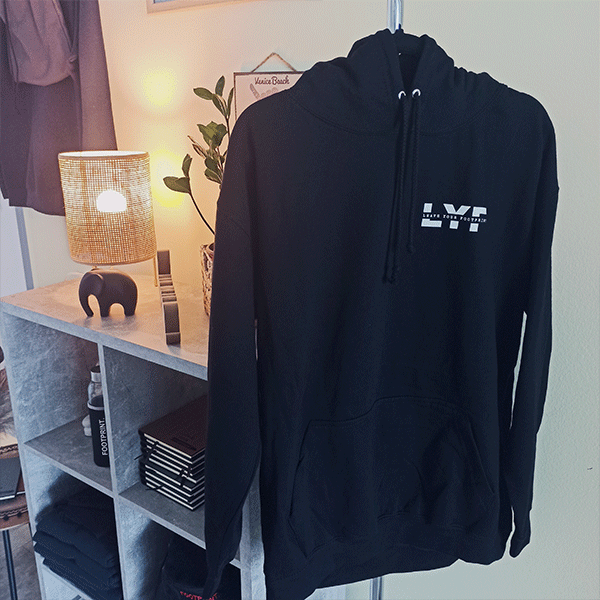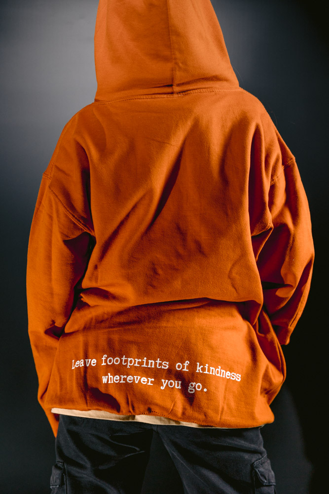 Leave Your Footprint hudica sa kapuljačom unisex. Logo s prednje i quote “Leave footprints of kindness wherever you go” na leđima.